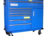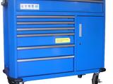 专门为汽车修理技术人员设计;车体选用1.2mm厚冷轧板,保证强度,牢固结实;4个5"尼龙轮(其中两个带刹车万向轮),推车更灵活,承重更大;带门锁的柜子,方便存放大件工具;单抽屉额定承重35KG;整体额定承重240KG。