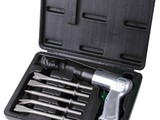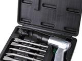 1、组套包含:1件气铲,5件长度175mm经热处理的中碳钢凿子,1件弹簧固定器,1件吹塑盒