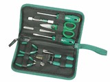 "世达8件套电子工具组套是一种小型多用途的维修包,为广大电子工程师、设备工程师.技术员等日常工作需要所设计。所有配置工具均放置在一个涤纶拉链工具包中.方便携带和收纳。工具包的表面材料经特殊处理手感舒适工具包面材料特别添加耐寒剂具有抗裂功能。避免冬天工具包产生破裂并始终保持手感柔软工具包内层加固在使用过程中不易变形工具包尺寸:245x160x35MM"