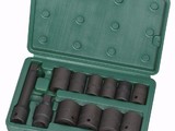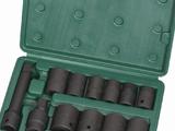 10件12.5MM系列英制风动套筒(7/16"",1/2"", 9/16"",5/8"",11/16"",3/4"",13/16"",7/8"",15/16"",1"") 1件12.5MM系列英制风动万向接头 1件12.5MM系列风动接杆(5"")