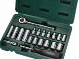 1 件6.3MM 系列快速脱落棘轮扳手1 件6.3MM 系列标准接杆2"" 1 件6.3MM 系列旋柄 13 件6.3MM 系列6 角套筒 (4,4.5,5,5.5,6,7,8,9,10,11,12,13,14MM) 4 件6.3MM 系列6 角长套筒(8,10,12,13MM)