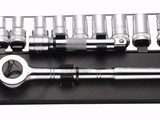 1 件12.5MM 系列快速脱落棘轮扳手1 件12.5MM 系列标准接杆5""11 件12.5MM 系列6 角套筒 (10,12,13,14,15,16,17,18,19,22,24MM)