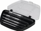 "5件套细牙断丝取出器(M3,M6,M8,M11,M14) 采用CR-Mo钢材制造,经热处理而成快速.便捷折卸已损坏的螺丝、管子、螺栓及大头钉"
