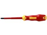 "经10000伏高压测试,有效确保使用者安全 进口合金钢刀杆整体热处理,头部磷化处理,有效 确保功能端尺寸更精准 进口双色材料专利型三角手柄,扭力输出更大,手 感更舒适,耐油防刮性能更强"