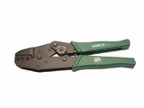 "高精密端子压着孔,适度压紧端子于电线上不损坏端 子 高碳钢板制造.不变形弯曲,玻璃纤维手柄 压力调整钮设计.方便各种端子使用独特压紧手柄 即可张开钳口设计 压着范围 美制电线标准 截面积 22-18AWG 0.5-1MM2 16-14AWG 1.5-2.5MM2 12-10AWG 4-6MM2"