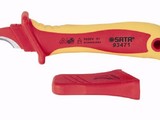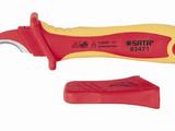 标准弯刃刀片,刀背特殊绝缘涂层,防止短路按人体工程学设计的刀柄,安全舒适 100%通过10000V高压测试,耐压1000V 适用于电力及相关行业的电线电缆作业